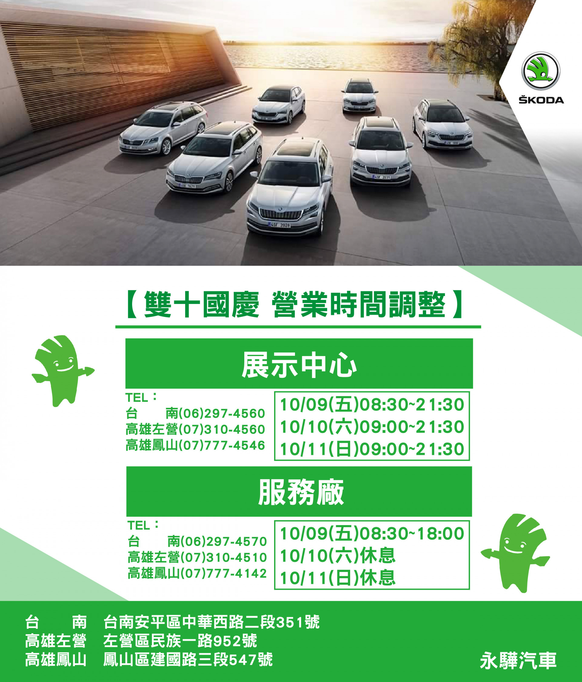 【公告】10月份雙十國慶營業時間調整