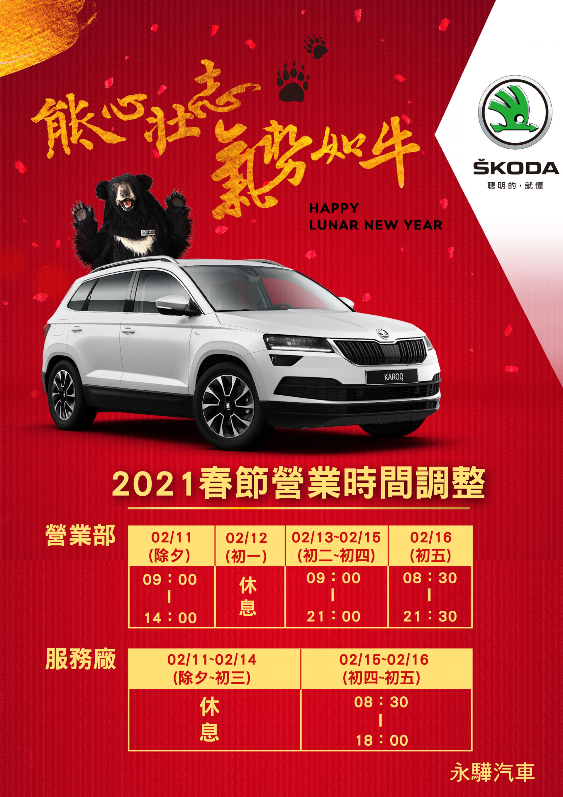 【公告】春節營業時間調整